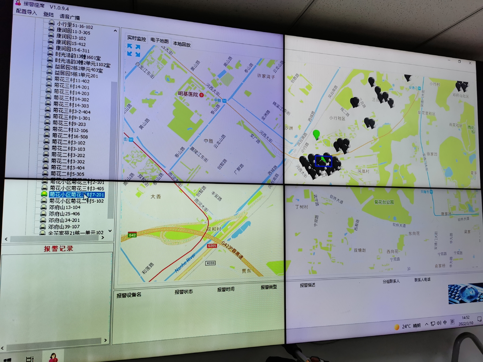 3月10日,记者走进南京市雨花台区赛虹桥社区卫生服务中心,见到了发挥大作用的大屏。大屏“那头”,连着的是赛虹桥街道30多户失能、半失能老人家庭。屏幕左上方显示“接警座席”字样,左侧一列的文件夹中详细记录着服务老人的住址、健康状况等信息。屏幕中间的地图上,密集的黑点标注着服务老人所在的位置。中心工作人员张启智告诉记者,一旦出现突发情况,老人或其照护者按下报警器,定位黑点将立刻变红,屏幕上随即出现老人家中的实时画面。此时,中心的值班医师只要点开相应文件夹,就可迅速了解老人基本信息,同时可远程指导急救、联系120救护车和附近的社区工作人员,前往实施救护。
