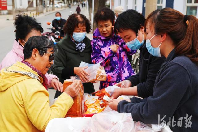 2022年4月17日,居民在河北省张家口市桥东区红旗楼街道工西社区养老服务站“超市惠民直通车”前采购主副生鲜等食品。服务站与各大商超约定各类食品全部促销价销售。