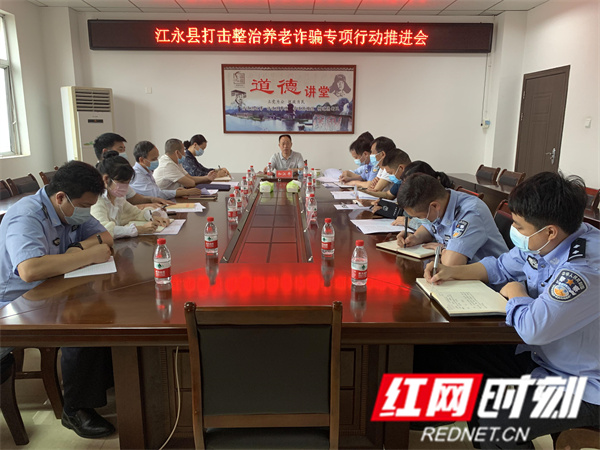 会议传达学习了中央、省、市打击整治养老诈骗专项行动相关文件精神,宣读了江永县打击整治养老诈骗专项行动实施方案,并对下一步工作进行了安排部署。