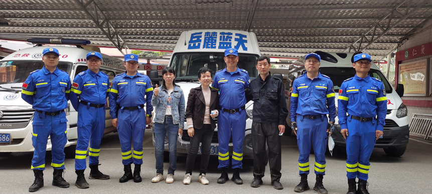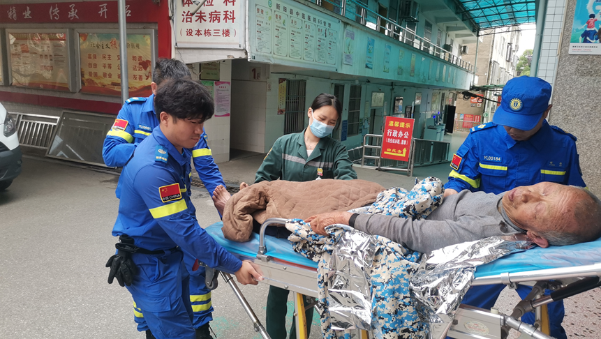 老人消失5天后,重新回到家人身边。而搜救了24小时的救援队队员们,为了避免老人转移救护车过程中受到二次碰撞,与谭章一起开车护送老人至新田县中医院,转交给医生。