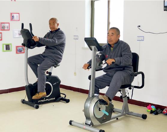 冀州区集中供养中心活动室里,老人正在锻炼。