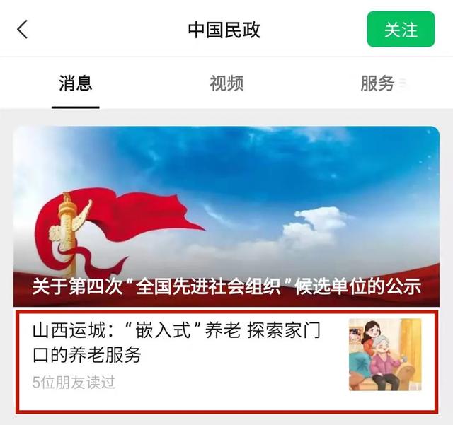 当天,“中国民政”发布的文章标题是《山西运城:“嵌入式”养老 探索家门口的养老服务》,内容转载的是本报12月13日刊发的《“嵌入式”养老 老人“足不出户”就能安享晚年》,把盐湖区“政府提供场所、财政给予补贴、社会力量参与”、推广“嵌入式”养老服务模式的经验做法,在全国范围内进行了宣传推广。