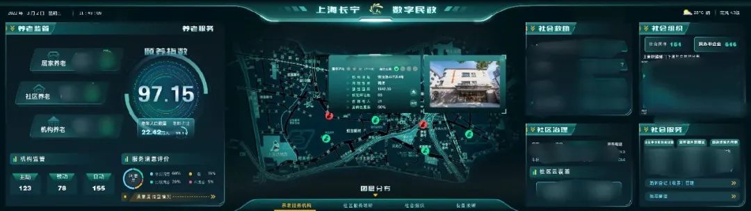 区民政局表示,在开发的“数字民政”平台上,全区养老机构分布及其地址、床位数等信息在辖区地图中一目了然,其颐养指数(包括机构养老、社区养老、居家养老)、满意度测评等服务内容皆已覆盖。接下来,社会组织、社会救助、社区治理、社会事务等民政业务将逐渐纳入平台管理,以数字赋能的方式做好全面、精准的监管服务。