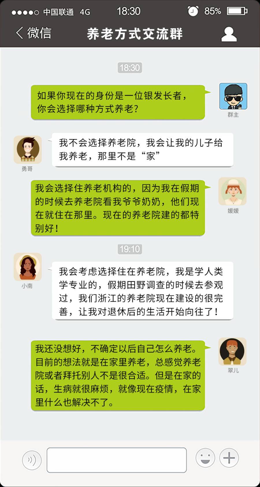 近日,绿地幸福家护理院社工小崔通过邮件方式采访了几位来自山东大学、济南大学等在校大学生,以“如果你现在的身份是一位银发长者,你会选择哪种方式养老”为话题,直面千禧一代年轻人眼中的银发洪流。