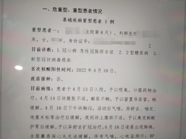 在利群医院的新冠患者收治档案中,还有一份“特殊的名单”每天都会被医务科和护理部反复翻阅,并在晨交班时不断更新。那就是被各病区重点关注的新冠危重症及基础疾病重型患者个案。对于阳性收治入院的孕产妇、婴幼儿,以及基础疾病较重的患者,医务科都会特别圈画出来,形成“一人一档”、监测预警、跟踪识别,尽力防止发展为重型、危重型。
