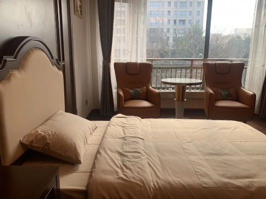 上海馨安老年公寓院长赵梦怡告诉记者,“我们对房间的空间设置比较宽裕,小的单人房有35平方米,大的房间则达到45平方米左右。此外,老人们还可以选择更大的套间,额外内置小客厅。房间内的各项设施设备都是完整的,包括洗衣机、智能电视机。老人入住后,还会被分配到一个iPad。工作人员会帮助老人一起操作,丰富老人的精神生活。”