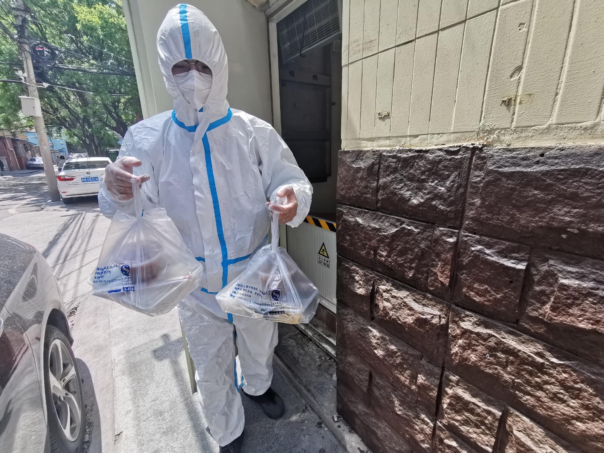 在丰台区西罗园街道的颐年堂养老院,为了让老人们吃上放心可口的饭菜,工作人员开展了无接触送餐服务。