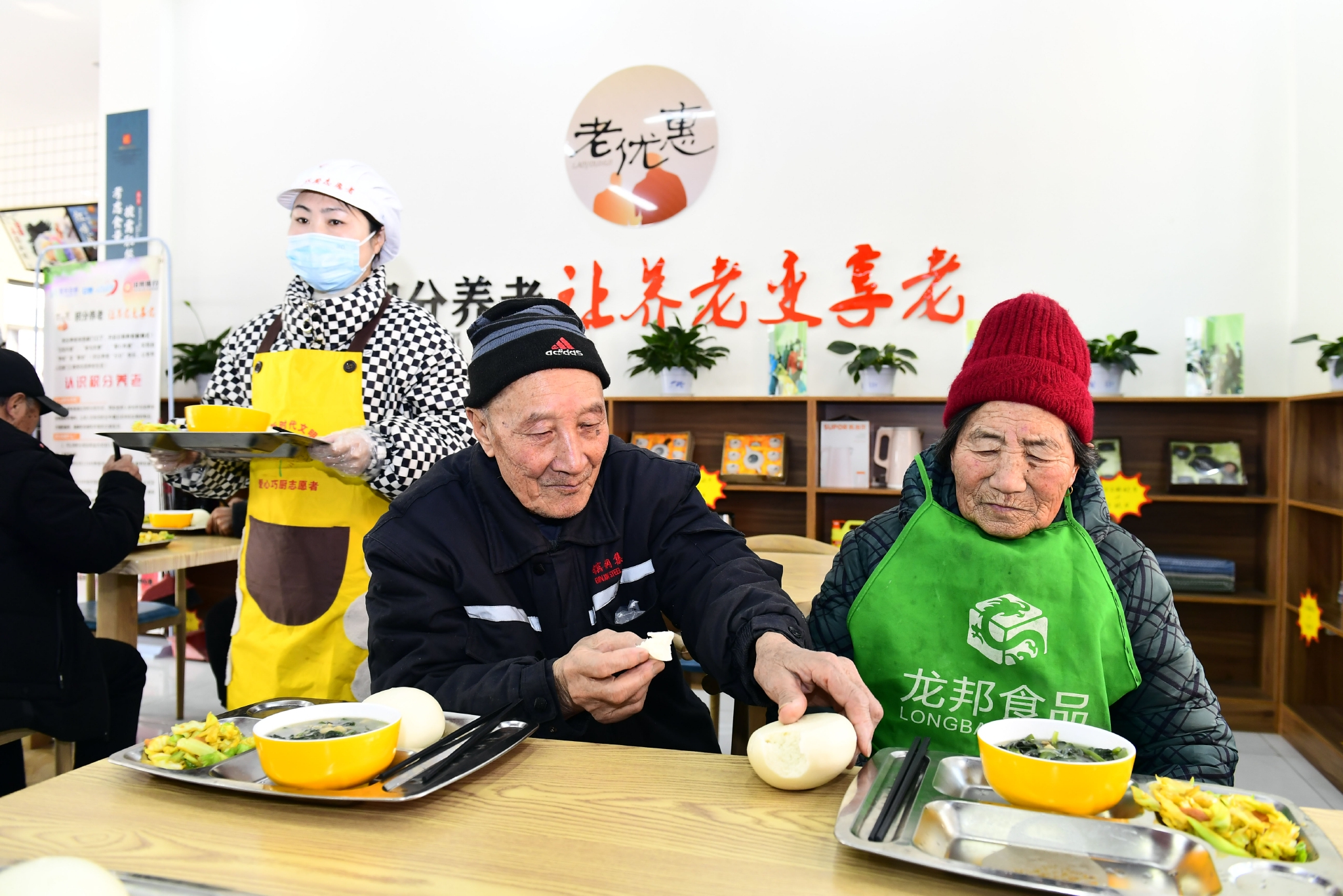 2月27日,在日照市岚山区虎山镇黄家峪村养老服务中心,老人在吃午餐。新华社记者 郭绪雷 摄