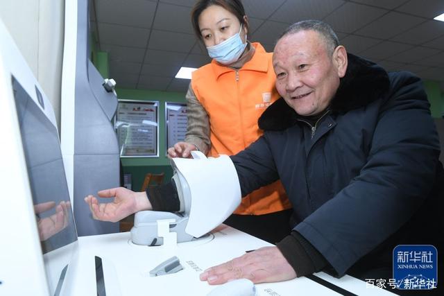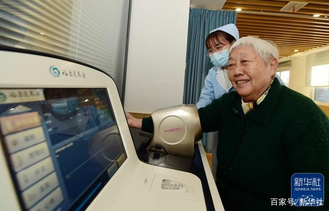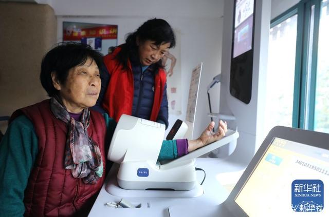 12月18日,在合肥市庐阳区大杨镇清源社区智慧养老服务中心,老人在智能健康体检一体机测量自己的血压、血糖、血氧、身高、体脂等。新华社发(葛传红 摄)