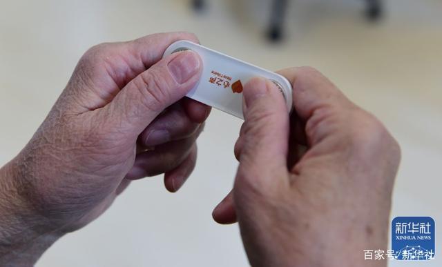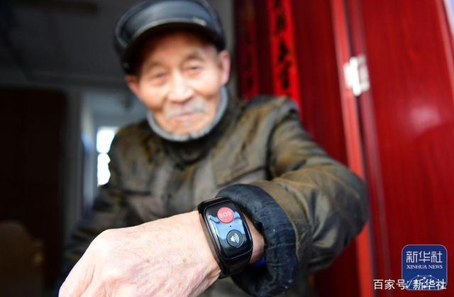 12月18日,在合肥市肥西县紫蓬镇五保供养服务中心,一名老人展示配发的智能手环。该智能手环具备一键求救、健康监测、跌倒报警、双向通话等功能。新华社发(徐勇 摄)