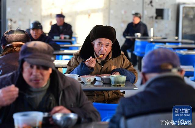 12月18日,在合肥市肥西县紫蓬镇五保供养服务中心,老人们在吃晚餐。新华社发(徐勇 摄)