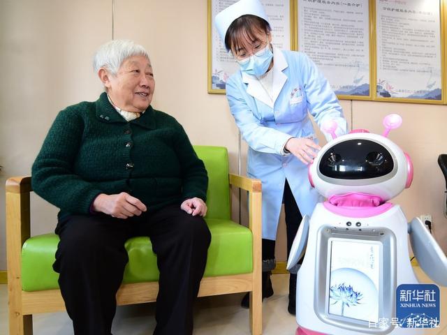 12月18日,在合肥市庐阳区大杨镇清源社区智慧养老服务中心,护士为老人介绍智能机器人的使用方法。该智能机器人可与老人聊天,为老人介绍天气情况,根据老人需求播放新闻、文艺节目等。