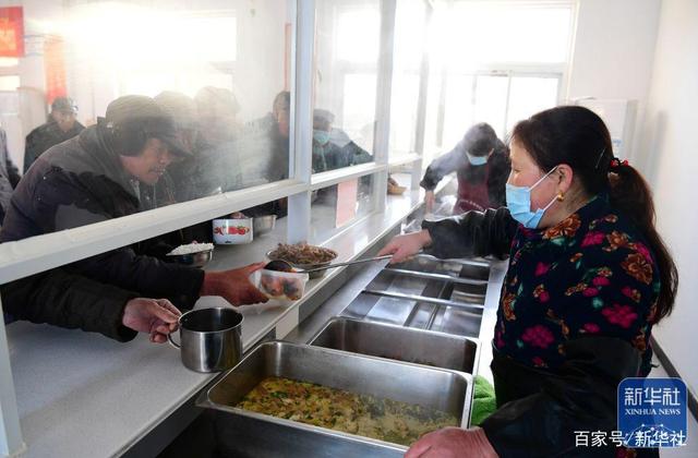 12月18日,在合肥市肥西县紫蓬镇五保供养服务中心,工作人员为老人盛饭。新华社发(徐勇 摄)