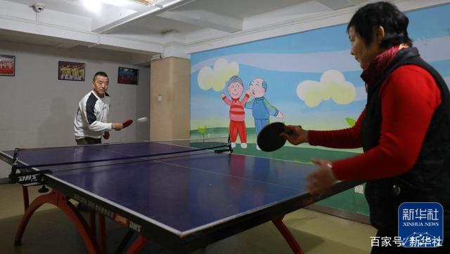 12月18日,在合肥市蜀山区三里庵街道居家养老服务中心,老年人在打乒乓球锻炼身体。新华社发(陈三虎 摄)