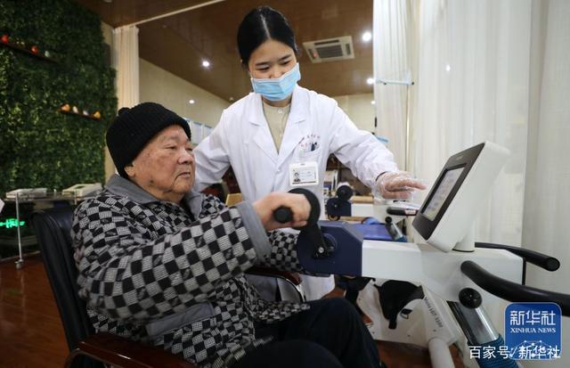 12月18日,在合肥市蜀山区清溪路社区一家护理院,护士在指导老年人做康复训练。新华社发(陈三虎 摄)