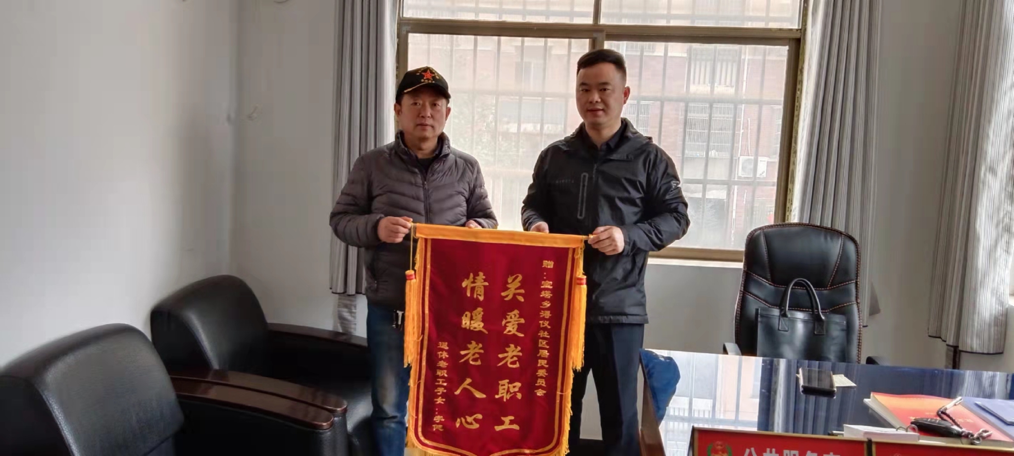 3月4日上午,宝塔乡浔仪社区收到了退休老职工李永博的子女为感谢社区无私关怀其老父亲,赠送的一面“关爱老职工 情暖老人心”锦旗。