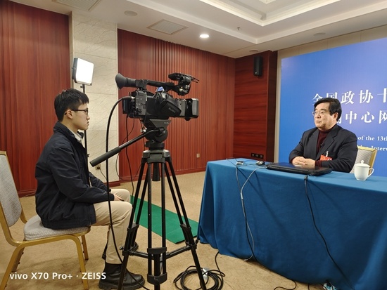 全国政协委员、原中国保监会副主席周延礼接受人民网记者采访。孔德晨摄