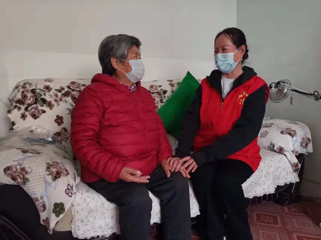 社区老党员志愿服务队成员王国萍时常到独居老人联文芳家探望。