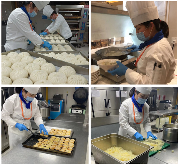 图说:泰康之家·申园餐饮部工作人员在做糕点