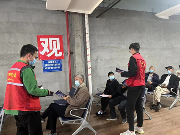 4月18日,郑州高新区枫杨办事处以辖区60岁以上老年人接种疫苗为契机,在各个疫苗接种点开展打击整治养老诈骗宣传活动,全力护好老年人的“钱袋子”。