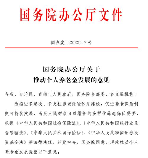 近日,国务院办公厅发布《关于推动个人养老金发展的意见》(下称《意见》),旨在推进多层次、多支柱养老保险体系建设,促进养老保险制度可持续发展,满足人民群众日益增长的多样化养老保险需要。