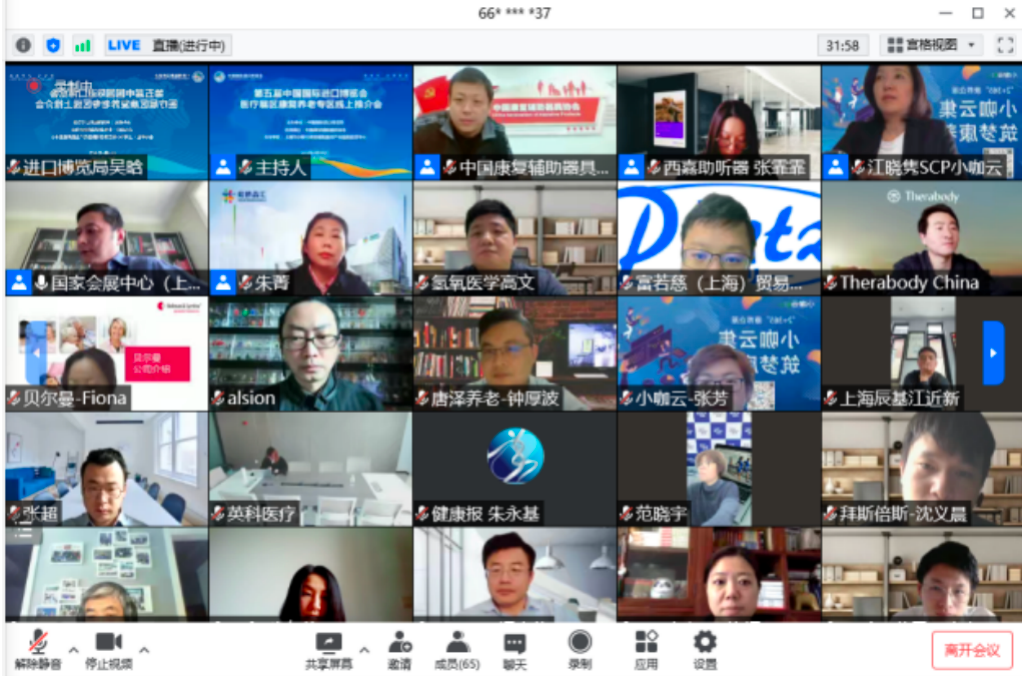 4月20日,第五届进博会医疗展区康复养老专区线上推介会举办。来自展馆方、参展方、采购方的代表线上参会并发言,68家康复养老企业线上参会。