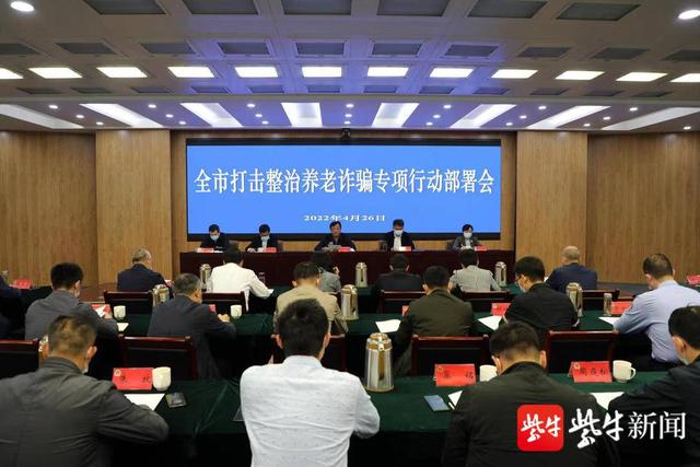 4月26日上午,镇江市召开打击整治养老诈骗专项行动部署会,镇江市委常委、镇江市委政法委书记许文出席会议并讲话。