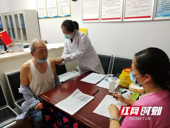 为老人接种疫苗。