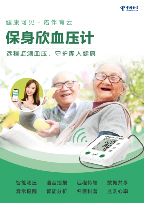 北京电信还专为老年用户推出了插卡智能血压计,支持一键智能测压、语音播报血压、远端存储记录、数据与子女共享、智能分析血压变化、在线名医科普养生等多种功能,帮助老年人日常监测血压指标,让子女随时掌握父母健康状况。在智能音箱上还可以设置提醒,定时语音提醒测压,联动守护家人健康。