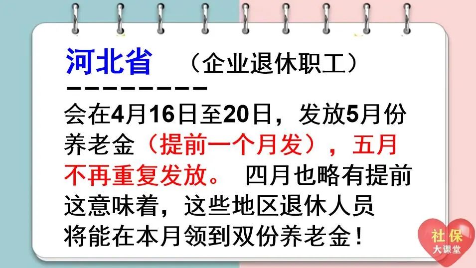 还有5月1日~5月31日之间,有两个省份,企业退休人员和相关的城乡居民退休人员,不会再重复发放养老金——所以希望大家转告给身边相关的老人。