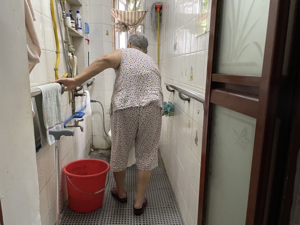 在医院做完手术后,张惠荣先在社区医院住了3个月进行康复,之后才回到家中休养,但当时仍只能卧床,日常生活无法自理,幸而社区医院的护士提供上门服务,之后还为张惠荣申请了家庭养老床位。张惠荣说,经过按摩之后,她渐渐能够行走,但最怕的还是上厕所和洗澡,腿上留着一道很长的手术伤疤,骨头上还有一条长长的钢板,走起来总是一拐一拐,她每一步都要分外小心,这一跤给她留下了不小的心理阴影。而老人家中的洗手间十分狭长,马桶又在最里面,淋浴设备也在马桶附近,这导致地面时常会有积水,也是当时张惠荣摔倒的诱因。