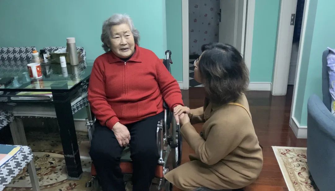 唐阿姨见到顾忠婷,非常开心,她曾是所住楼的楼组长,前几年摔伤后,身体便一直不是很好。居委会得知后,在天气好的时候,经常会推着唐阿姨出门转转。