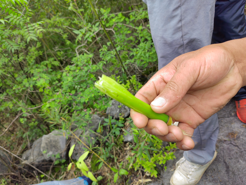 29日上午,在搜救的过程中,借助无人机,搜救队员发现了疑似老人家用过的蛇皮袋和小竹笋;随后救援队副队长邱明星找到了老人家使用过的镰刀,周边还有一些新砍伐的树枝,这让队员们看到了希望,在附近展开了细致的搜索。
