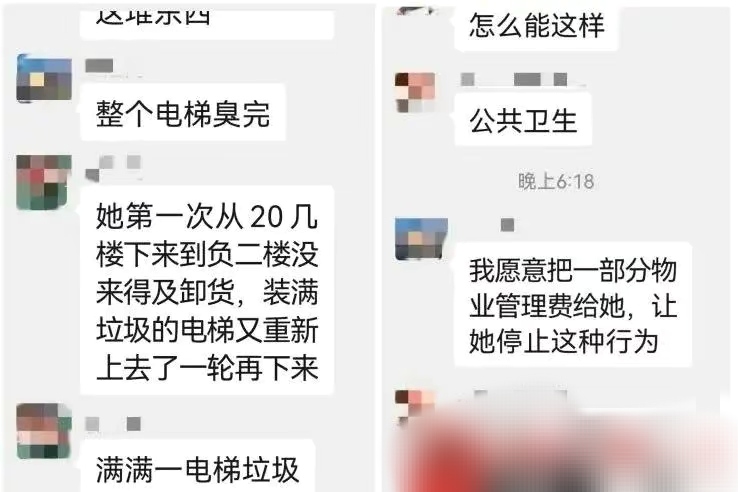 陈女士表示,巫阿婆捡垃圾,这是自食其力,是值得表扬的精神,但是她发扬精神,不能建立在影响别人生活的基础上。除了陈女士,别的业主,也纷纷在业主群里诉了苦,有业主表示,只要巫阿婆不再捡垃圾了,他愿意把一部分的物业费交给她!