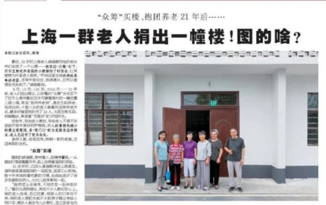 由于农村信用社要搬迁,上海嘉定区外冈镇葛隆村132号的二层小楼空了出来。老人们灵机一动,准备把这栋楼买下来养老。