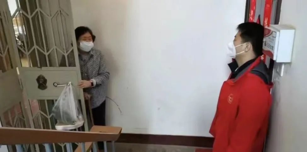 景二元:老人现在80多岁,腿脚不方便坐轮椅,以前老人餐都是送到家的,这疫情期间我们志愿者服务上门,举手之劳都是应该的。我们就是把饭挂到门上再敲门,然后他开门出来取,就是无接触,也不希望让老人心里有什么负担。