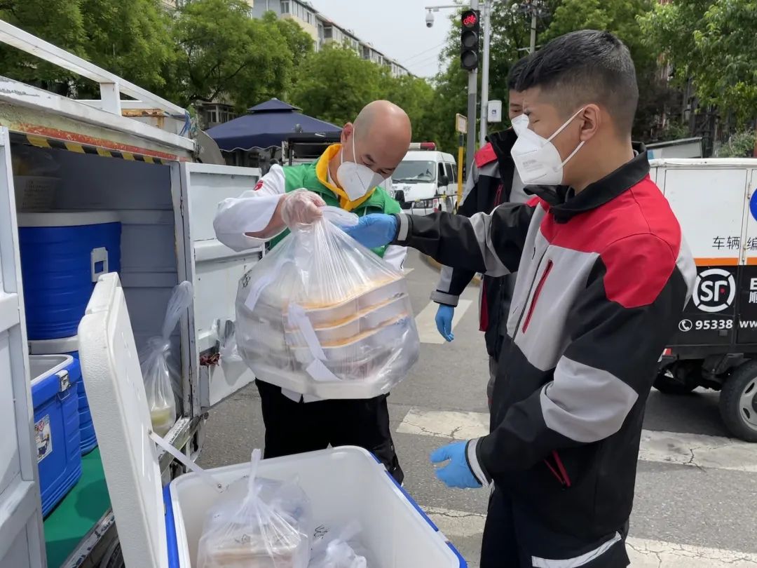 海淀区甘家口街道集结快递员、社工、志愿者等多方力量,上演爱心“接力”送餐,让不方便下楼的高龄、独居老人吃上热乎饭。