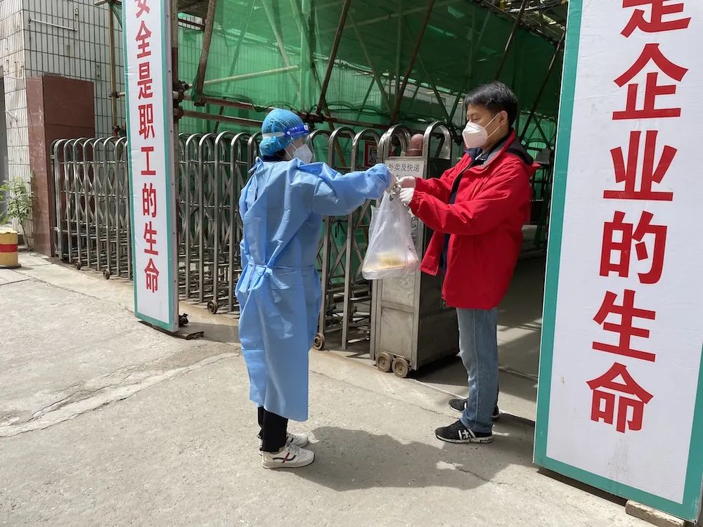 徐志刚:我们基本上10点半左右就在这等着,接上餐以后,我们4个人分别负责甘东社区、中纺社区、白中社区等这几个地方,完了之后拿上餐送到临时管控小区门口,志愿者再往里送。