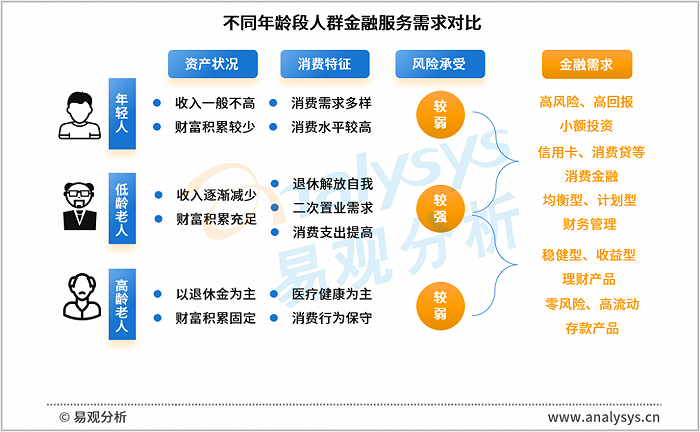 图 2-4 不同年龄段人群金融服务需求对比