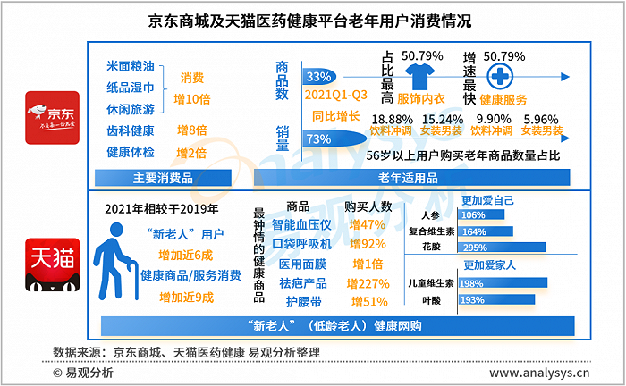 图 2-2 京东商城及天猫医药健康平台老年用户消费情况