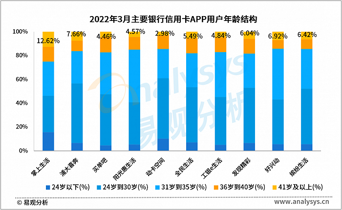 图 3-1 2022年3月主要银行信用卡APP用户年龄结构