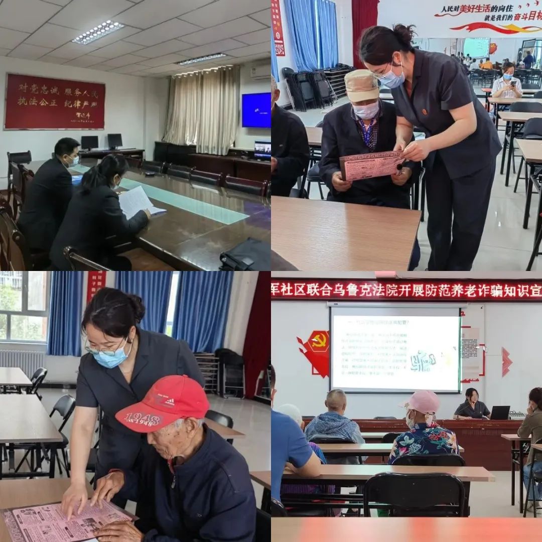 宣传进社区。结合近期发生的养老诈骗真实案例,乌鲁克垦区法院工作人员以讲座的形式,面对面讲述了可能发生的诈骗陷阱,如借“养老”之名,收取会员费、床位费、欺诈销售“保健品”等八种常用手段和应对措施,用通俗易懂的语言,生动讲述不法分子如何利用老年人法律知识欠缺而实施诈骗行为,并提供了行之有效的防范养老诈骗建议。