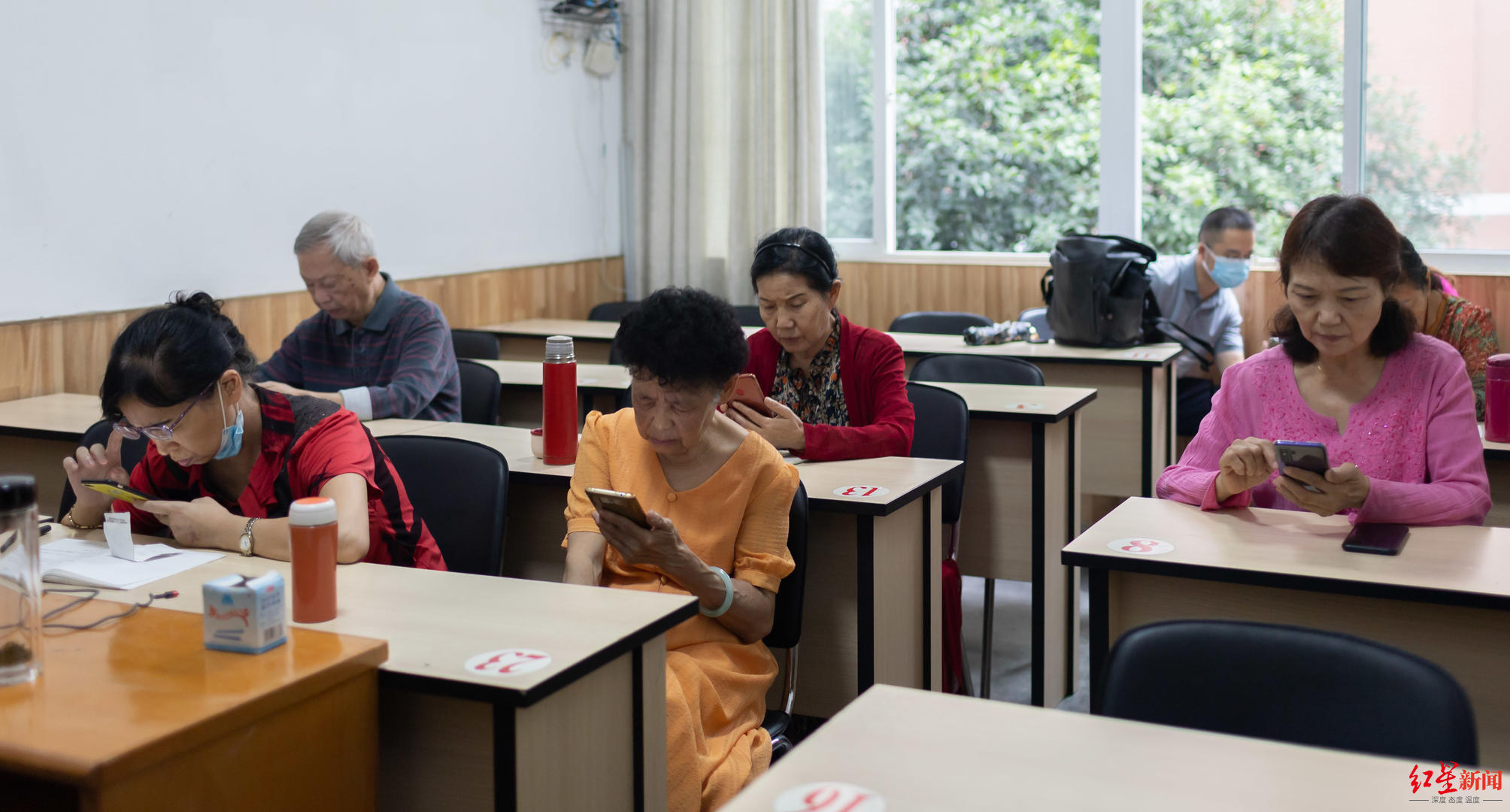 ▲成都市锦江区老年大学,老人们正在上智能手机课