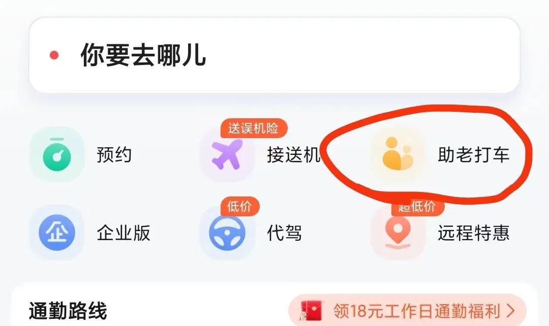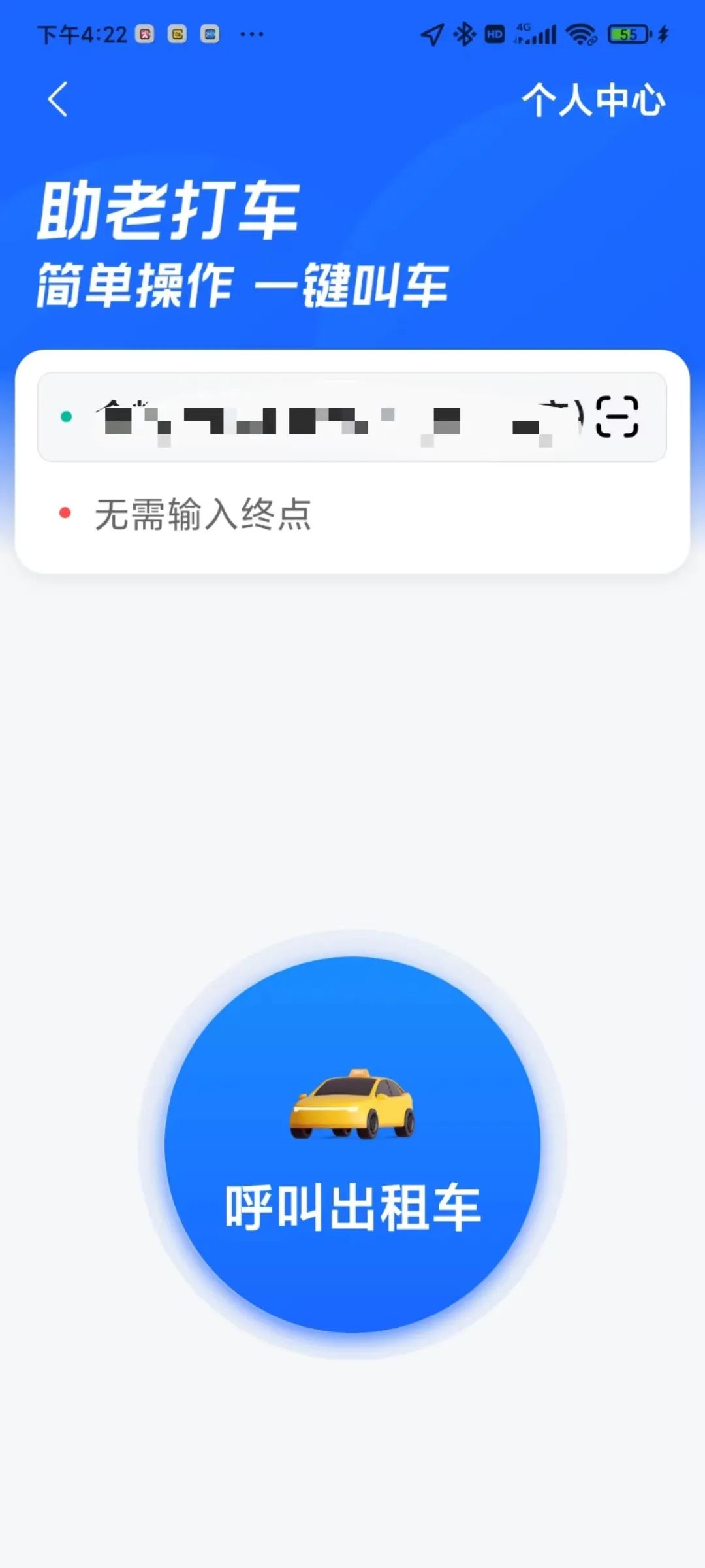 扫码进入打车界面后可以看到,助老打车模式采用大号字体,方便老年人阅读操作。