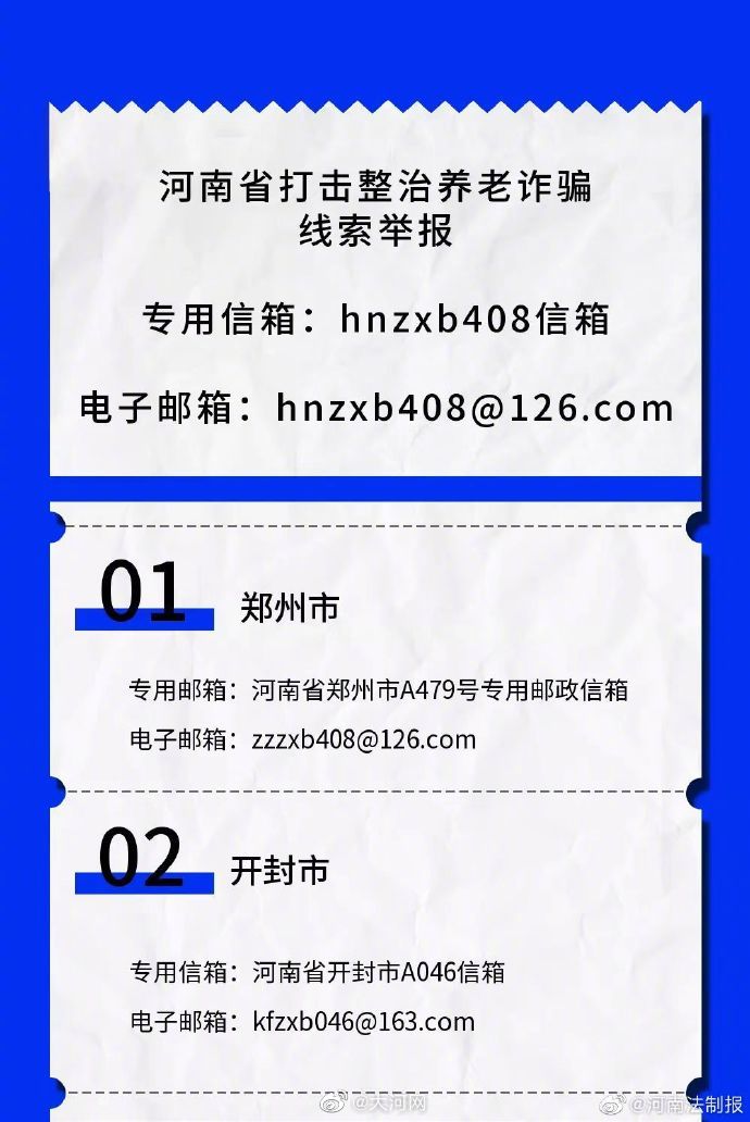 内容提要:周知!河南省各地打击整治养老诈骗线索举报方式