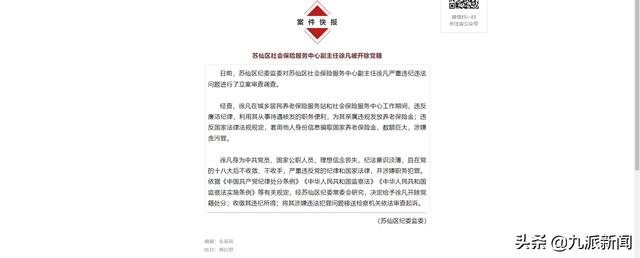 2021年9月29日,苏仙区纪委监委发布通告称,日前,苏仙区纪委监委对苏仙区社会保险服务中心副主任徐凡严重违纪违法问题进行了立案审查调查。