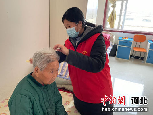 志愿者们为老人梳头、剪指甲。 朱涛 摄