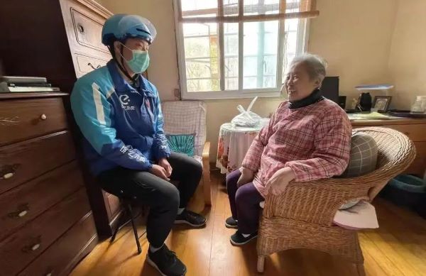 饿了么骑手为老人上门送餐