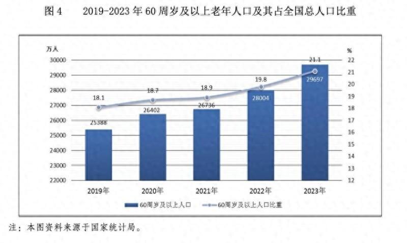 近日,民政部发布《2023年民政事业发展统计公报》。据公告披露,截至2023年底,全国60周岁及以上老年人口29697万人,占总人口的21.1%,较去年增加1.3%。其中65周岁及以上老年人口21676万人,占总人口的15.4%。
