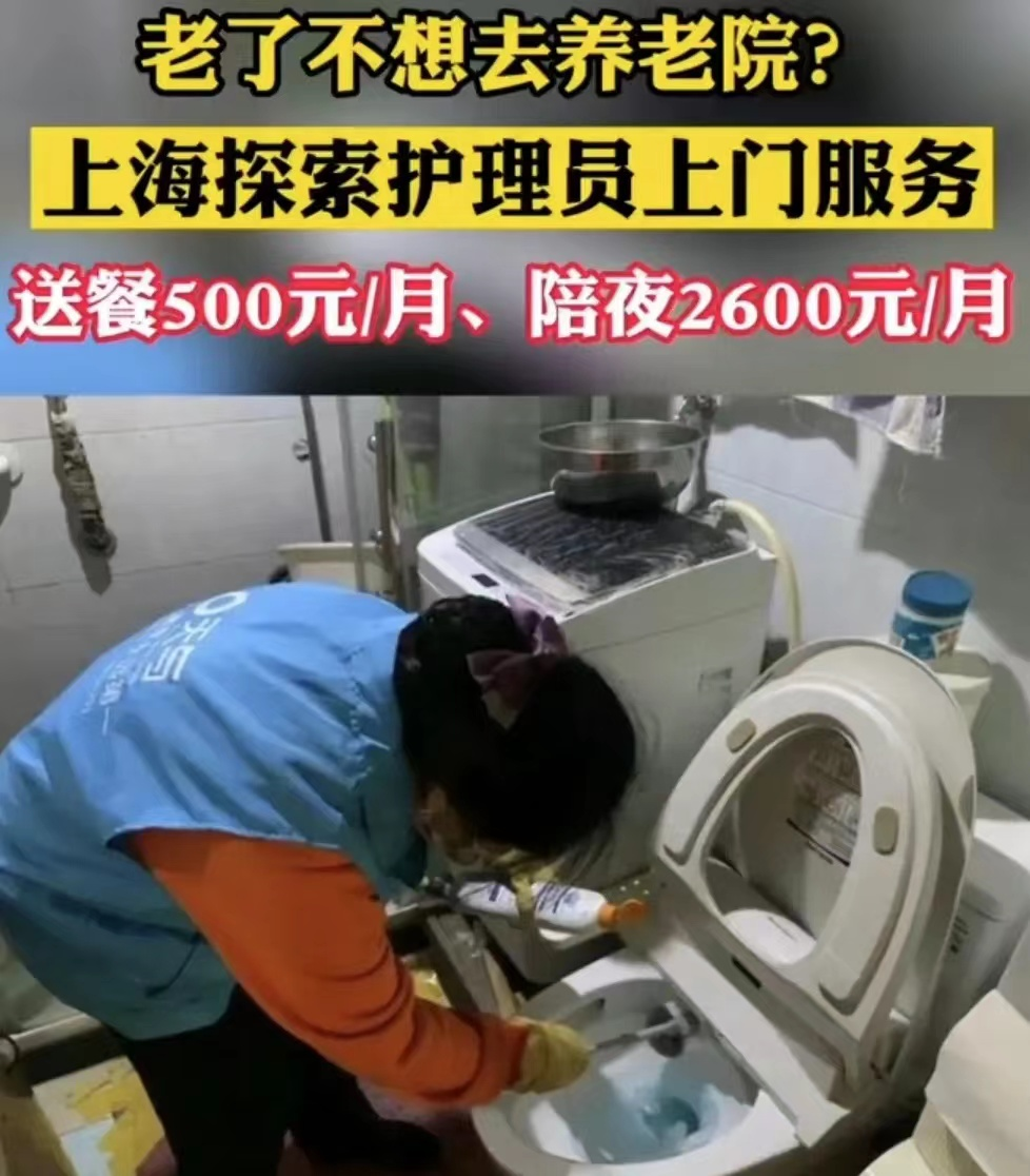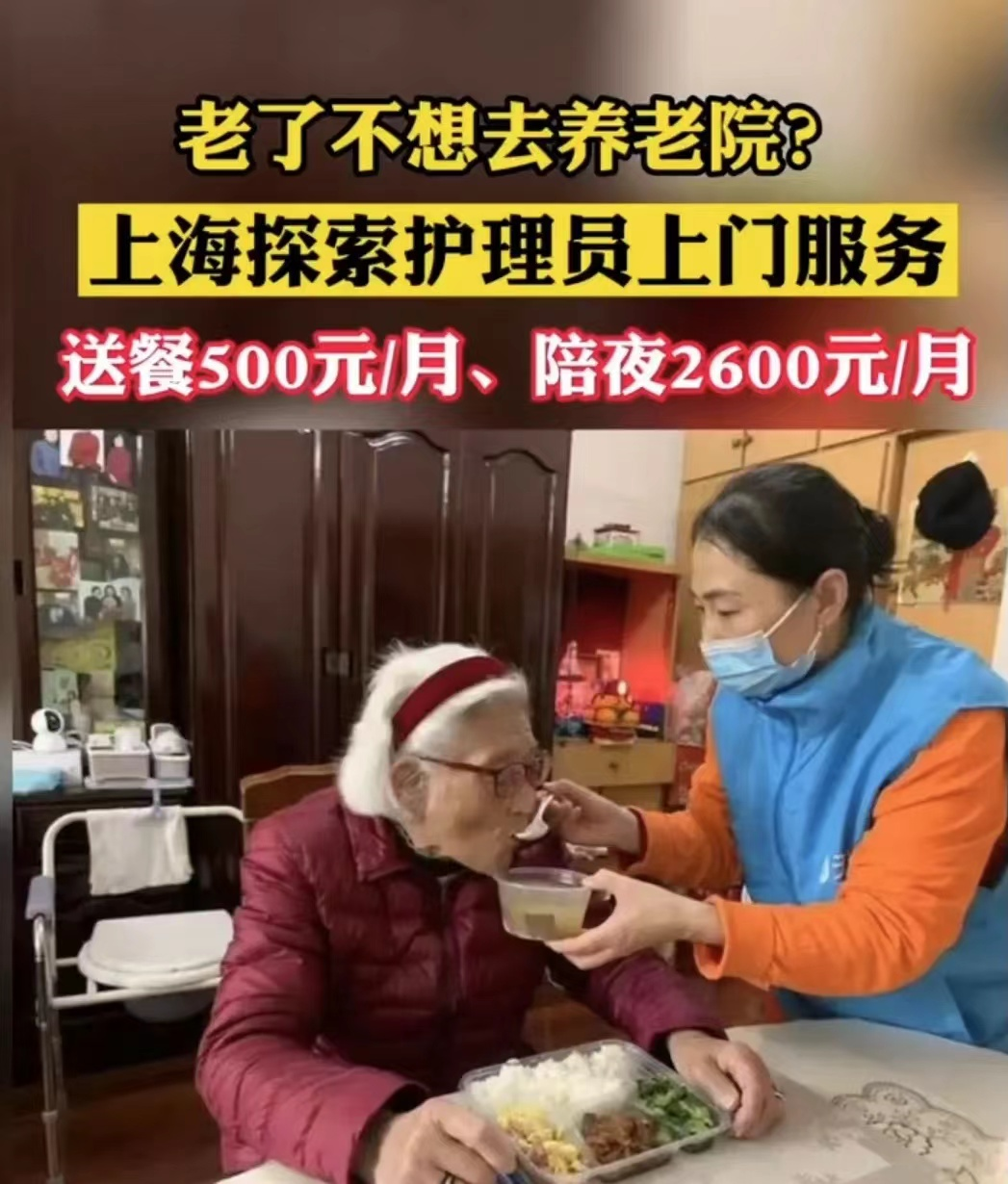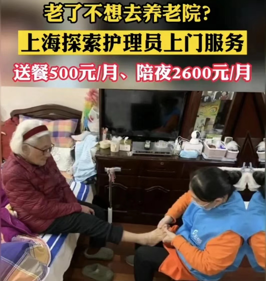 最近有网友爆料,上海出现了新型的养老模式,护理员可以提供上门服务,而服务的方式也变得更加人性化,例如:可以选择包月送餐服务,每月收费500元;还可以单独选择包月陪夜服务,每月收费2600元。对此,网友表示:对刚性需求进行这种套餐定制,可以满足不同经济条件的群体!